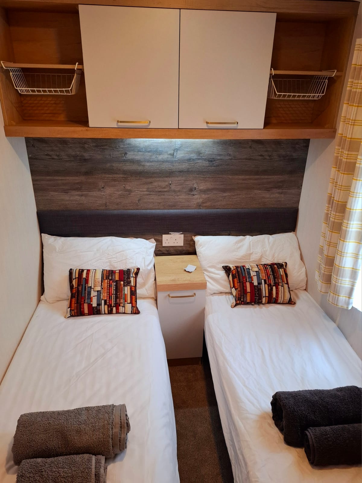 • Reading lights : Bedroom have main lights as well as reading lights located underneath the headboard – easy to miss them, but not once you know where! Main bedroom have bed side (touch sensitive) lamps.